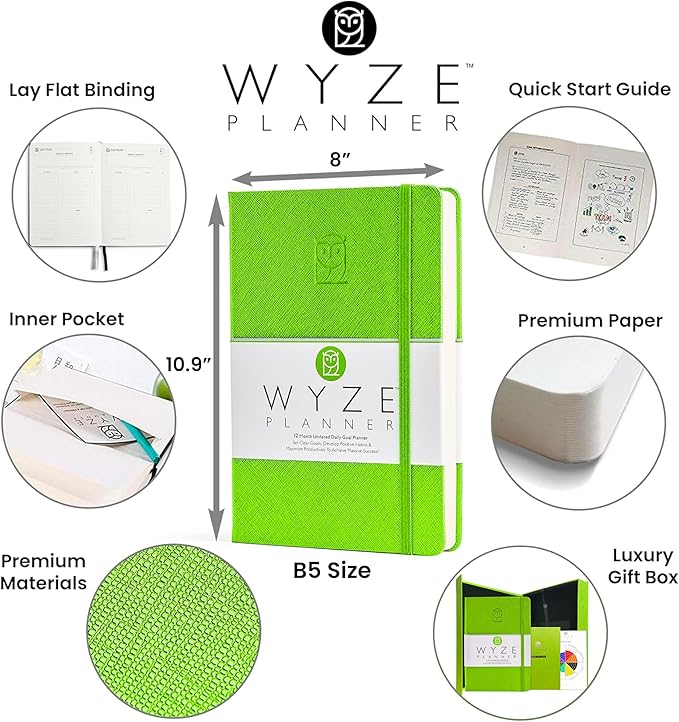 Undated Daily Planner – 1-Year B5 Productivity Organizer with Two-Page Weekly Spread, Goal Setting, Habit Tracker, Weekly & Monthly Pages – Hardcover Time Management Notebook (Lime Green)