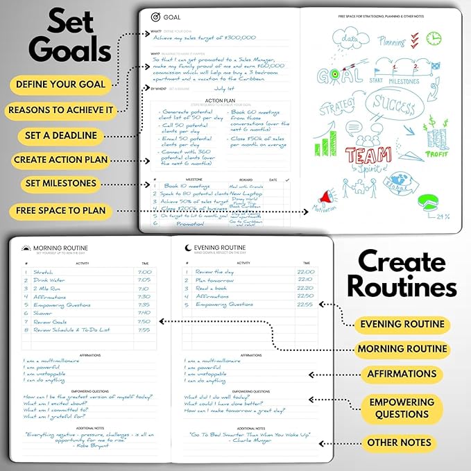 • STAY ALIGNED WITH YOUR GOALS – Use built-in goal-setting tools and review prompts to stay focused on long-term success—whether you’re managing business milestones, career growth, or personal development.