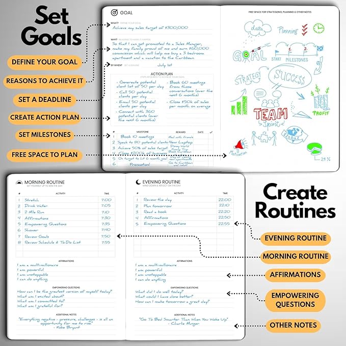 • STAY ALIGNED WITH YOUR GOALS – Use built-in goal-setting tools and review prompts to stay focused on long-term success—whether you’re managing business milestones, career growth, or personal development.