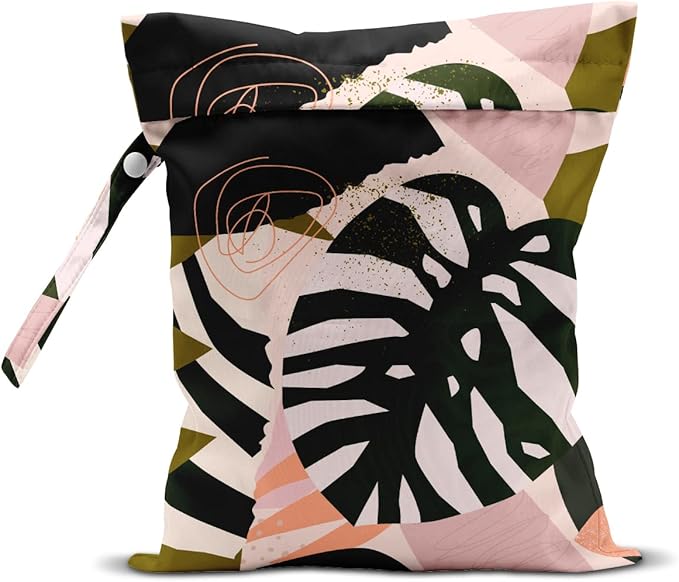 Wet Dry Bag for Swimsuit, Travel, Beach, Pool, Stroller, Diapers, Dirty Yoga Gym Clothes, Makeup Bag, Waterproof Tropical Palm Leaves Decor Jungle Palm Leaf Favors