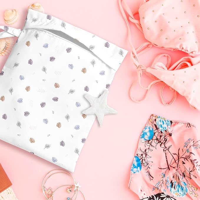 Wet Dry Bag, for Swimsuit, Travel, Beach, Pool, Stroller, Diapers, Dirty Yoga Gym Clothes, Makeup Bag, Waterproof Tropical Palm Leaves Decor Jungle Palm Leaf Favors