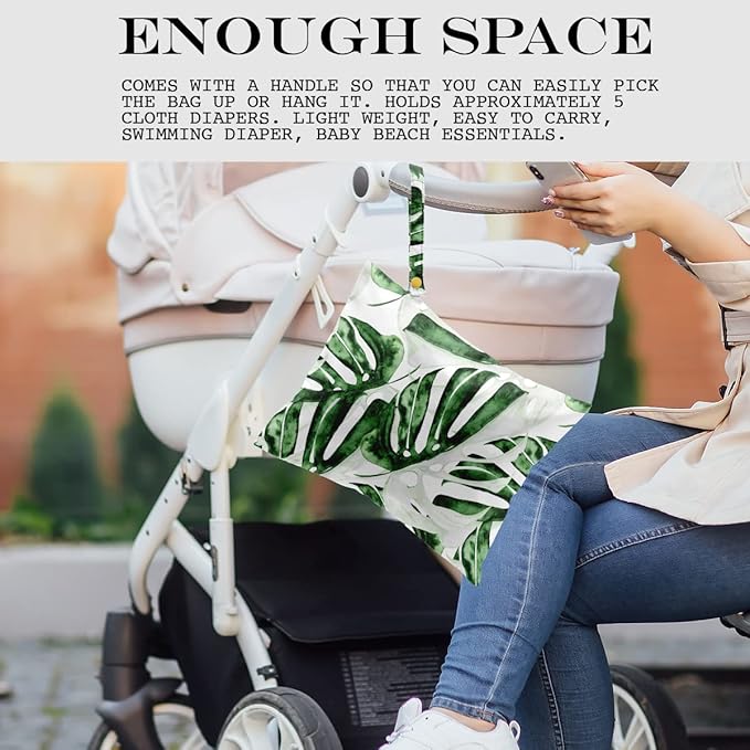• ENOUGH SPACE - 26cm x 32cm (approx.: 12.5” x 10.2”). Comes with a handle so that you can easily pick the bag up or hang it. Holds approximately 5 cloth diapers. Light weight, easy to carry, swimming diaper, beach essentials.