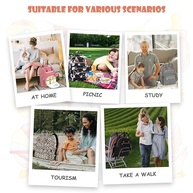 • 【Convenient & Well-Designed】Revel in the convenience of this spacious diaper bag, complete with 2 stroller straps and a pacifier case, along with a foldable diaper changing pad as special gifts. Its multitude of pockets neatly organize diapers, wipes, formula, toys, and more. Perfect for indoor, outdoor, shopping, office, travel, and even doubles as a hospital bag!