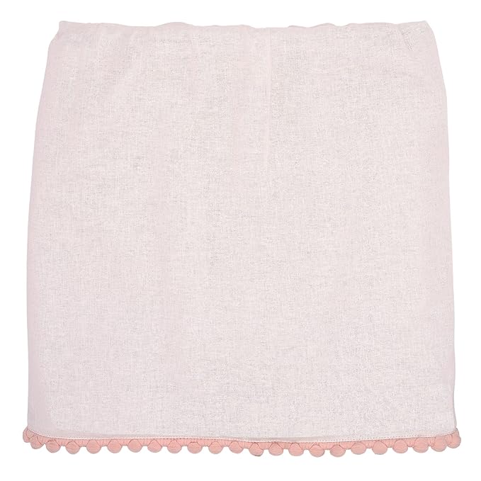 • Pretty pom pom trim decorates the linen quilt and crib skirt