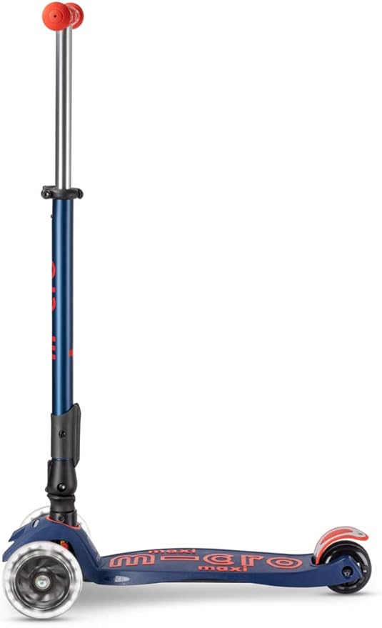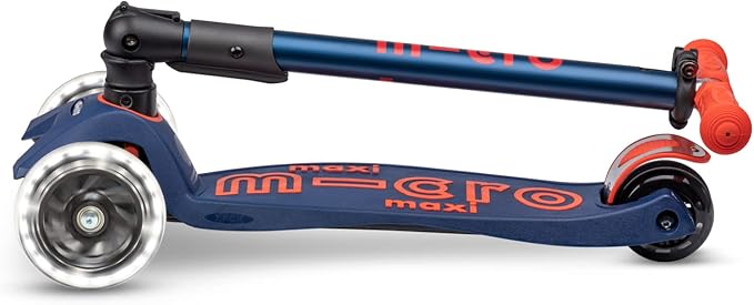 • Micro's newly upgraded Maxi Deluxe Foldable LED features motion-activated light-up front wheels and a foldable T-bar for easy carrying & travel. Created with a lean-to-steer design, offering a stable ride that supports children as they curve and carve the sidewalk.