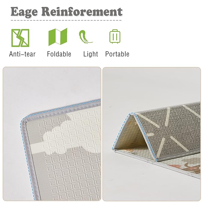 • Portable & Foldable: This baby play mat can taking on a trip for a nice soft area for kids to play; can be placed outdoor, back of van and place at multiple surfaces. This baby play mat is easy quick to fold up