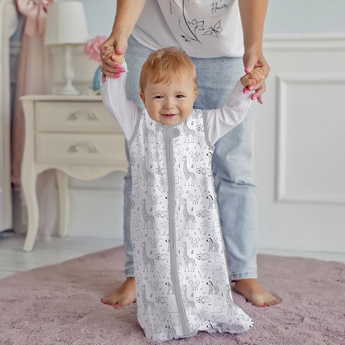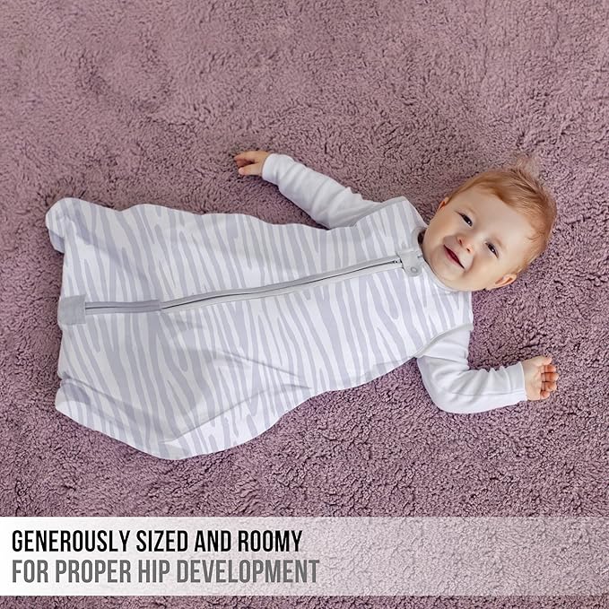 • 【BABY FRIENDLY, PROVIDES SAFE & SECURE SLUMBER】— Rest easy while your child is sleeping soundly without any loose blankets that could tangle or twist. Our baby sleep sack 6-12 months provide your child a safe & comfortable sleeping experience. The safety tab guarding your baby's tender neck & chin, promotes a consistently safe & cozy fit. Our wearable blanket sleep bag has a bottom zipper cover that deters your baby's hands from unzipping the blanket, ensuring a safe & uninterrupted slumber.