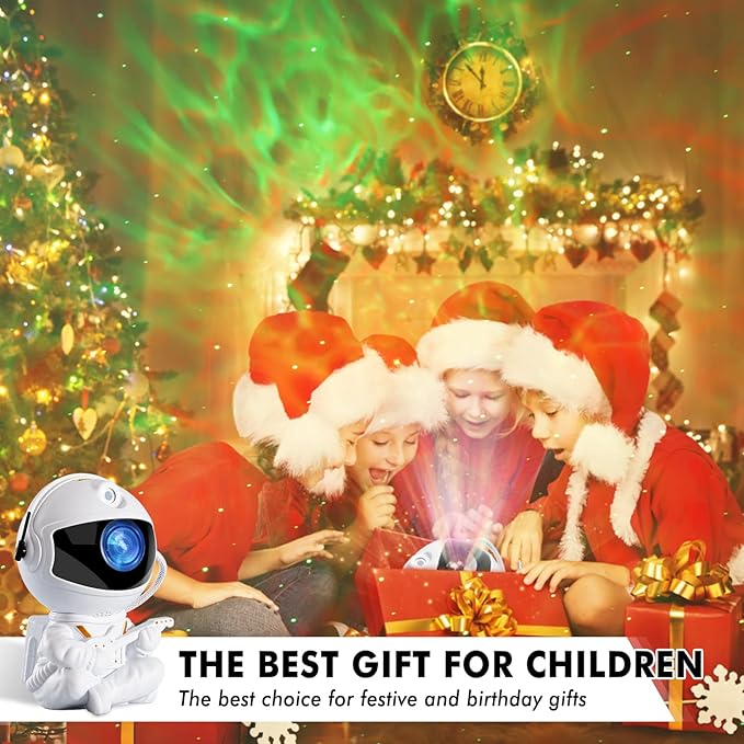 • Star Galaxy Projector: This star galaxy night light projector works without any noise. It features seven galaxy changing effects, as well as multiple twinkling green stars. The speed is adjustable and the colors are rich and varied. The astronaut's head can be rotated 360 degrees to customize the projection angle you like, bringing you a rich visual experience. Project the galaxy lights projector onto the wall or ceiling to create a peaceful and romantic ambience in the room to relax and unwind.