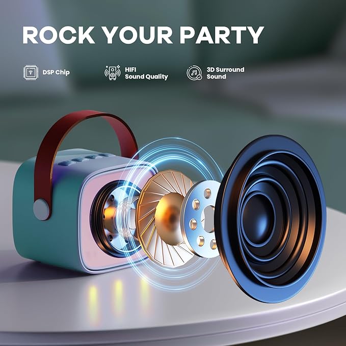 • Ultra-Portable Design: Take the party with you! This mini karaoke machine fits in your backpack for singing on the go. Having fun without any interruption.Birthday party, meeting, classroom, family activities, toys for girls. This portable Bluetooth speaker and wireless karaoke microphone will meet all of your "fun singing" needs