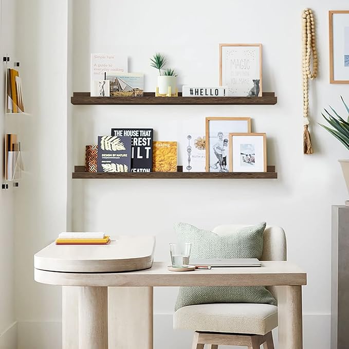 • 【Perfect solution for your walls】The living room shelves is SAME SIZE as each other (L 36" x D 4.5" x H 2.2") and is such an easy way to display photos without making lots of holes in your walls. The wall shelves are crafted from Paulownia wood which are lightweight yet proportionately strong, sustainable real wood. They come fully assembled and all mounting hardware is included in the package.