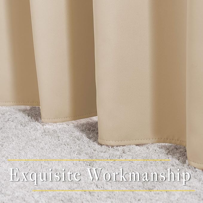 NICETOWN Bedroom Blackout Curtains and Drapes - Window Treatment Thermal Insulated Solid Grommet Blackout Drapes for Bathroom (Biscotti Beige, Set of 2, 37 by 54 Inch)
