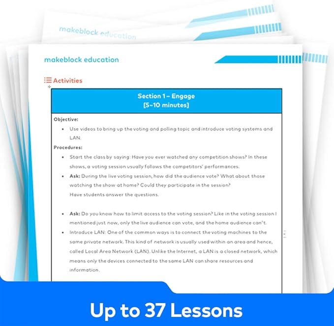 • Easy-to-Follow Lessons — Includes up to 37 step-by-step lessons designed for both teachers and learners. Covering everything from the basics to advanced projects, the curriculum is adaptable for different learning paces, making it suitable for most classrooms and self-learners.