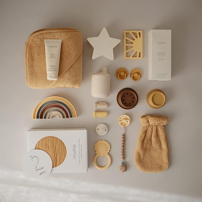 mushie Baby Bath Mitt | Organic Cotton | Pack of 2 (Fall Yellow)