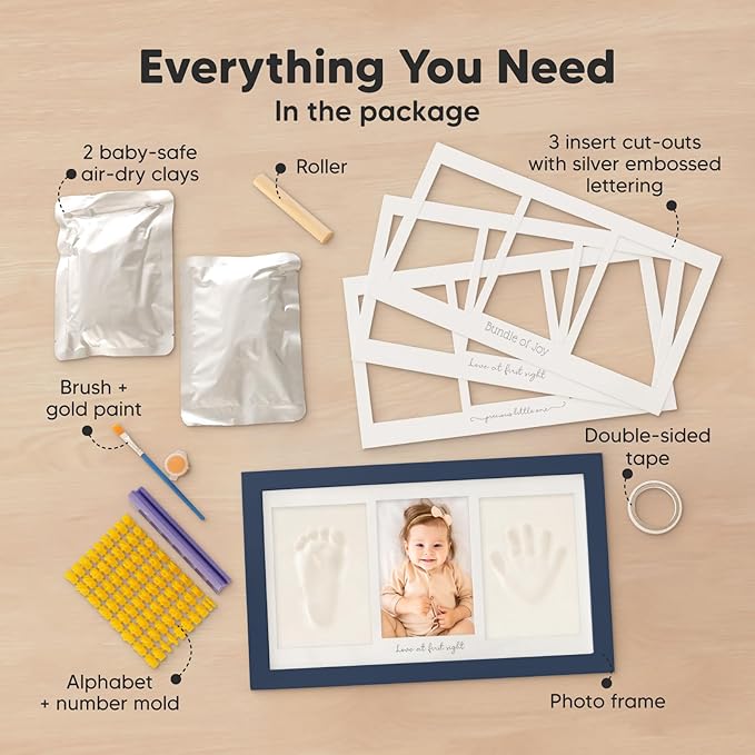 • 100% Safe Food-Grade Clay - Our baby picture frame features 100% baby-safe air-dry clay, perfect for preserving your baby prints. Our premium material ensures durability, the baby hand and footprint maker will look flawless for years to come.