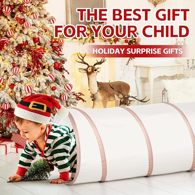 • 【Durable Twill Tunnel】With its premium twill look and feel in the neutral colors allow this kid play tunnel to complement the look of any room, which also an unique addition to any playroom. The twill crawl tunnel is a fun and engaging way for children to develop their gross motor skills, spatial awareness, and imaginative play, making it a valuable addition to any child's playtime activities.