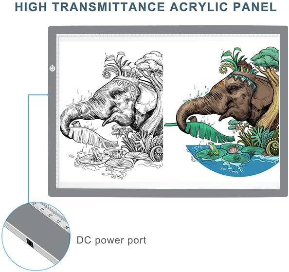 LitEnergy A2 LED Copy Board Light Tracing Box, Ultra-Thin Adjustable Artcraft LED Trace Light Pad for Tattoo Drawing, Streaming, Sketching, Animation, Stenciling (Silver)