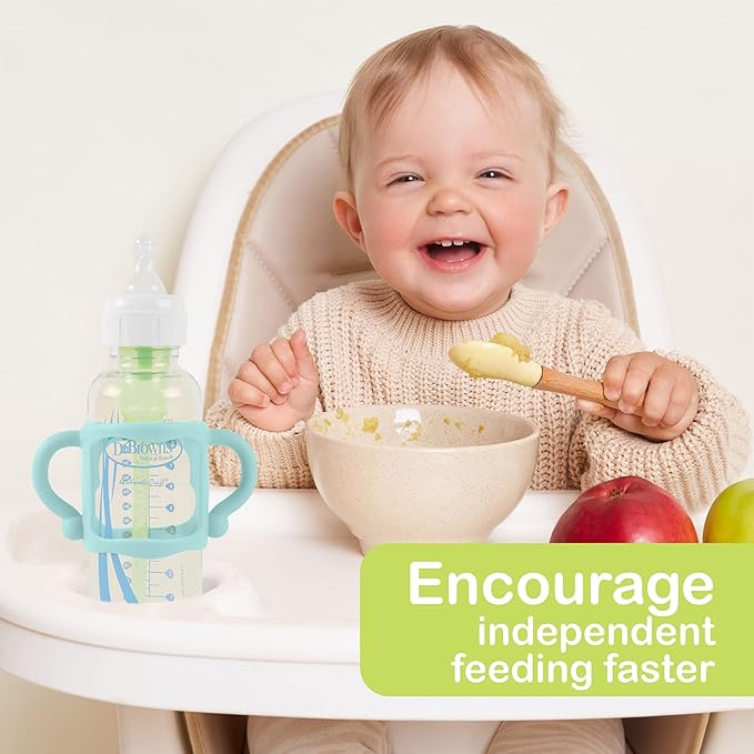 • DUAL EASY-GRIP HANDLES - Encourage independent feeding faster and more effectively with 2 easy-grip handles. Unlike other baby bottle holders, the handles are smoother, longer, and more ergonomic for a more natural grip