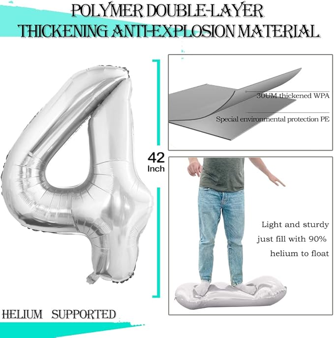 GOER Number 14 Balloons for 14th Birthday Sweet 14 Party Decorations,42 Inch Jumbo Foil Helium 41 Balloons for 41st Birthday Party Decoration (Silver)
