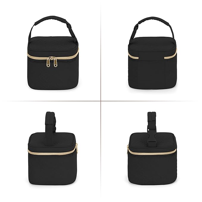• CONVENIENT DESIGN: Padded top handle with detachable buckle strap for convenient carrying or attaching to your stroller. Compact size can be easily packed into your breast pump backpack.