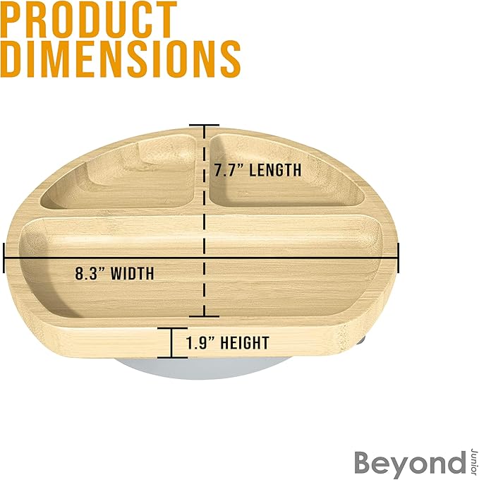 • EASILY FITS IN ANY HIGHCHAIR: Ergonomically designed for children at least four months of age, our baby bamboo plate has a convenient size that fits all brands of high chair trays. It is intended to encourage toddler self-feeding without (so much of) the mess.