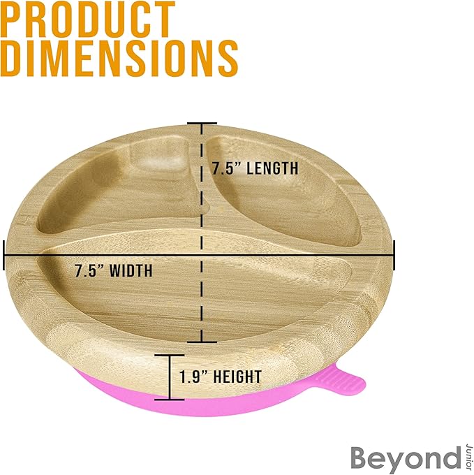 • EASILY FITS IN ANY HIGHCHAIR: Ergonomically designed for children at least four months of age, our baby bamboo plate has a convenient size that fits all brands of high chair trays. It is intended to encourage toddler self-feeding without (so much of) the mess.