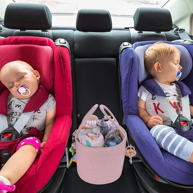 Large Baby Diaper Caddy Organizer for Girl Boy Rope Nursery Storage Bin Basket Portable Holder Tote Bag for Changing Table Car Travel Baby Shower Gifts Newborn Essentials Registry Must Haves Pink