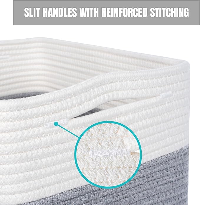• Well-Sized Bins with Elegant Slit Handles - Set of Three (3) Basket Bins: 15" (L) x 10" (W) x 10" (H). Our baskets are handmade with flexible material, which may result in slight size variations. Measurements should be taken from the center of each side to the center of the opposite side after the bins are fully unfolded & expanded. Taking measurements along just one side or when it is folded may result in smaller measurements due to the rounded corners and folding.