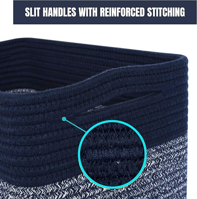 MINTWOOD Design 3-Pack Storage Baskets for Shelves, Playroom and Classroom, Book Basket, Decorative Storage Cube Bins, Woven Closet Organizers, Pantry and Shoe Organizer, Navy Blue