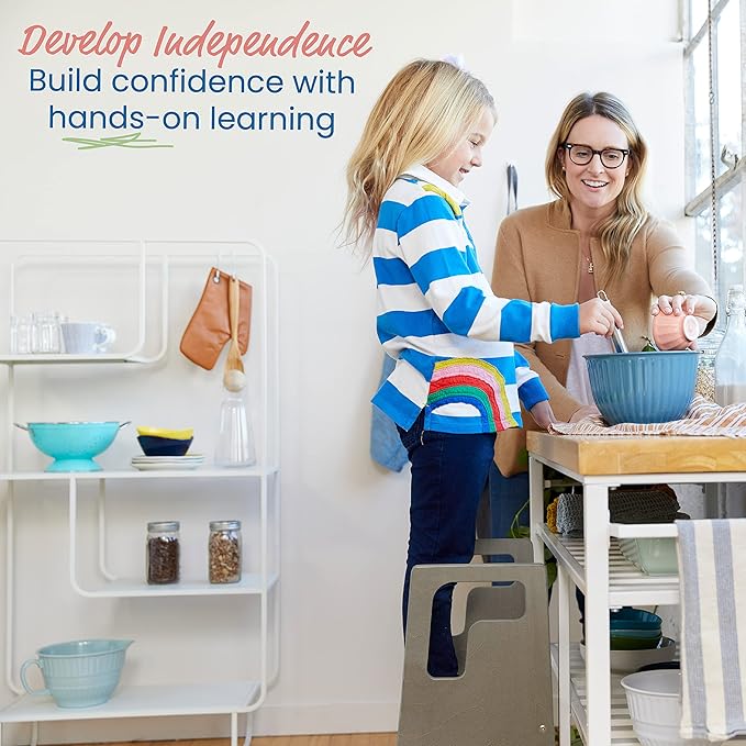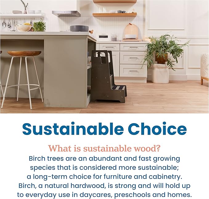 • Two-Step Stool: Countertop-height step stool designed for little helpers to grow confidence as they cook, wash hands, and brush teeth in a home, preschool, or daycare