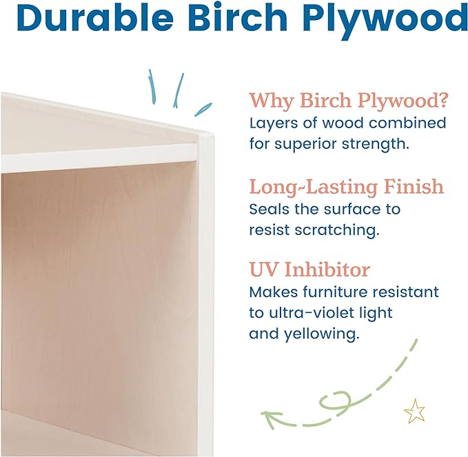 • Certified Safe: Kids book shelf is GREENGUARD [GOLD] Certified for low VOCs, TSCA, and CPSIA compliant; features rounded edges and smooth surfaces for safety