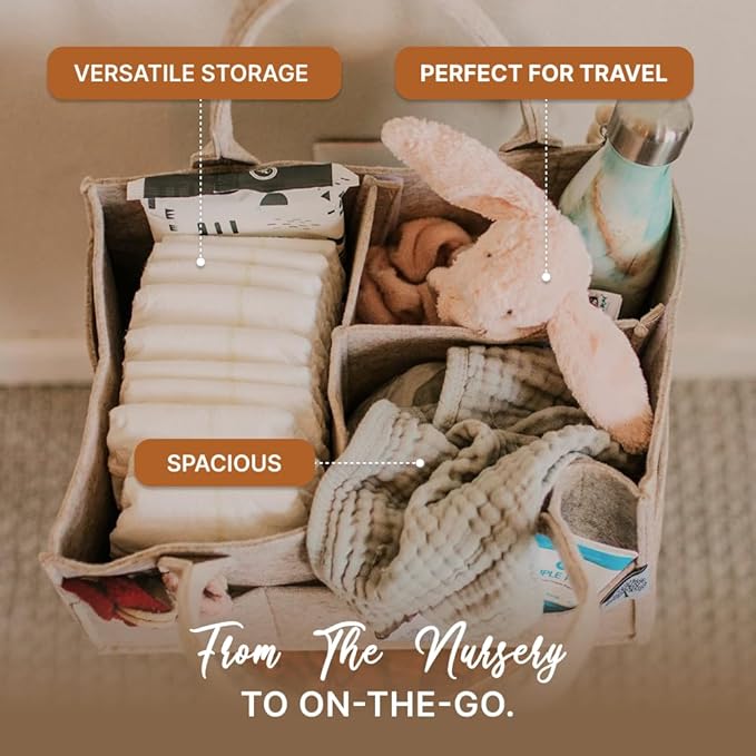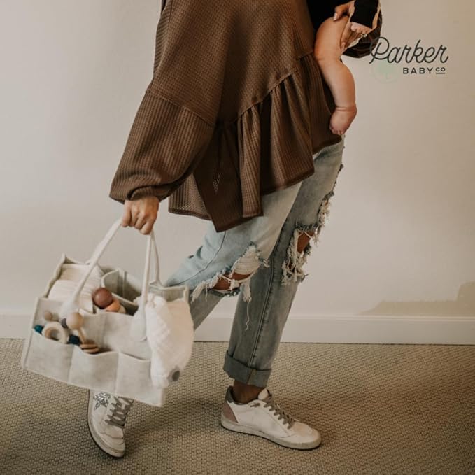 • QUALITY AND SATISFACTION GUARANTEE: Crafted from soft felt, our diaper caddy is built to last. The high-quality materials ensure durability and easy maintenance. We stand behind the product with a satisfaction guarantee, making your purchase risk-free. Elevate your diaper organization with the Parker Baby Diaper Caddy – the ultimate diaper bag essential and nursery organizer.