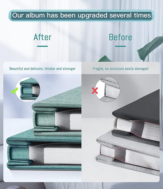 • 📒High quality: The album cover is wrapped in high-quality linen, highlighting the retro and exquisite style. The album frame is made of hard laminated cardboard, providing a stable structure for the album.You can create a special memory books or picture books to preserve every good time and moment in your life.
