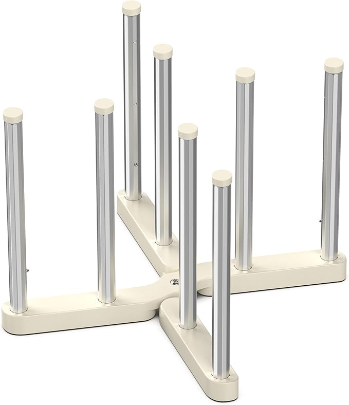 • 【High-quality Material】The collapsible drying rack is made of durable and eco-friendly materials, the eight rods are made of aluminum with plastic hats on the top and two sturdy plastic bases on the bottom, there are also four anti-slip pads on the bottom of the base.