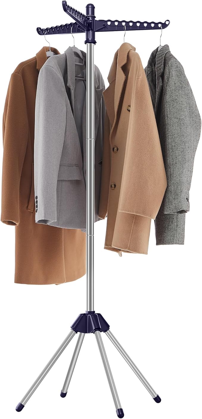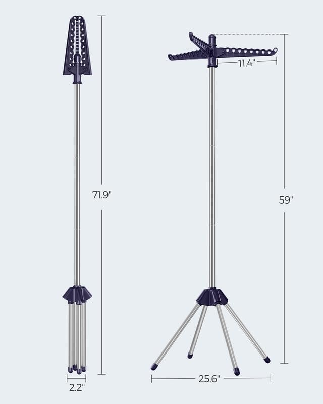 • [Foldable & Space-Saving] Standing at 25.6”D x 25.6”W x 59”H during use, this clothes drying rack takes up little space, perfect for small spaces. Fold the arms and legs into a small size of 2.2”D x 2.2”W x 71.9”H, it will stay out of the way after use