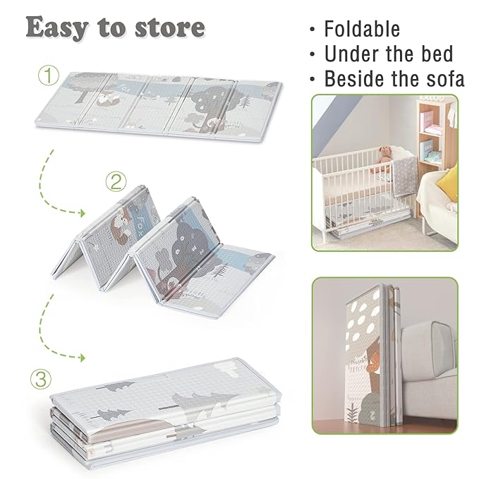 • Portable & Foldable: This baby play mat can taking on a trip for a nice soft area for kids to play; can be placed outdoor, back of van and place at multiple surfaces. This baby play mat is easy quick to fold up