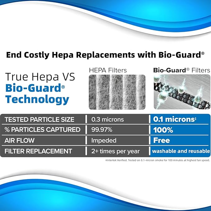 • DUAL 3-STAGE FILTERATION – 2 Stainless-steel prefilter captures large particles. 2 Hi-Tech Bio-Guard Filters & 1 Bio-Guard 360 Filter remove harmful airborne particle pollutants and odors.