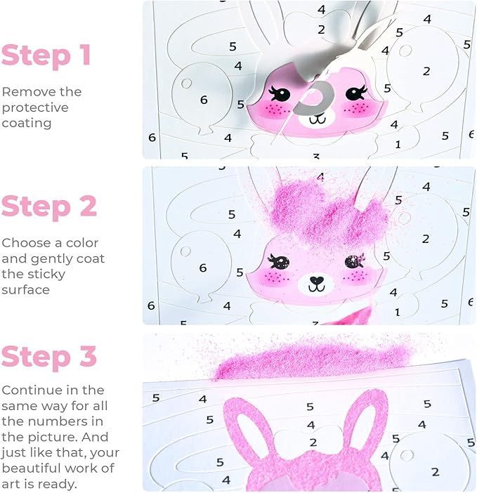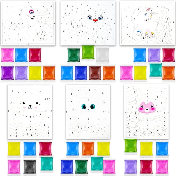 • Sand Art Pictures: We present our brand new sticker sand mosaic set containing 6 different pictures and a sticker palette that will help you create the most beautiful peel and stick sand art.