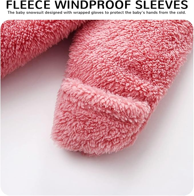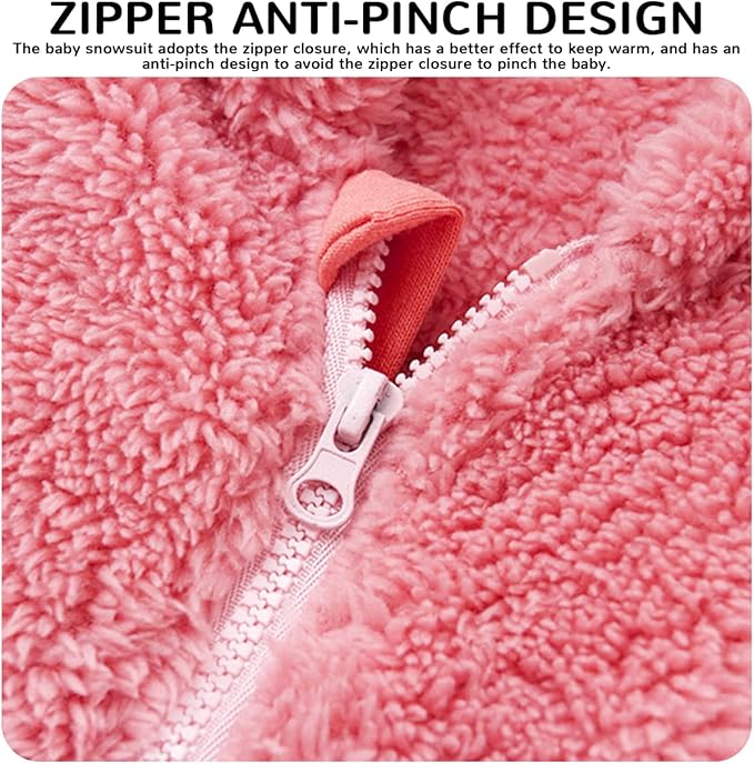 • ??Design: Baby snow jacket warm one-piece jacket, full-cover zipper design to protect the baby from harm, one pull to the end, it is convenient for the baby to change diapers, the flip-up gloves can keep the baby warm and energetic at the same time, the bear ear one-piece cap makes the baby Avoid cold winds outdoors while increasing your baby's charm