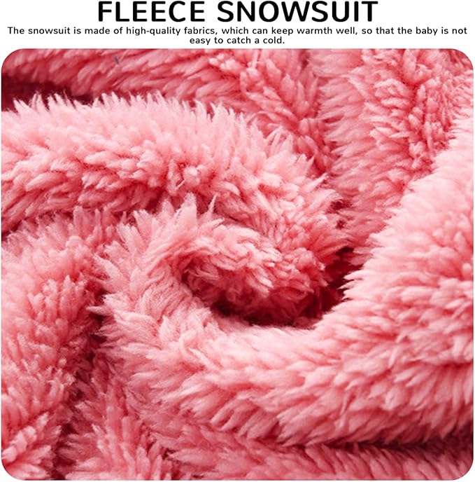 • ??Material: This baby snow suit made of high quality polyester fiber, double lining, fine polyester fiber cares for baby's delicate skin. The newborn winter outfit hoodie whole body jumpsuit design, keeps the baby's head and ears inside and warm when outing. The toddler boys & girls snow suit accompanies the baby through the cold winter.