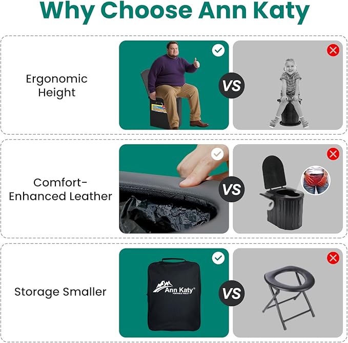 • 【Ergonomic Design】The upgraded Ann Katy toilet has a height of 15.7 inches, a size we developed after extensive research and professional approval. This height helps fully relax the muscle, allowing the colon to empty quickly and completely. It’s also the perfect camping toilet on the market with the right height!