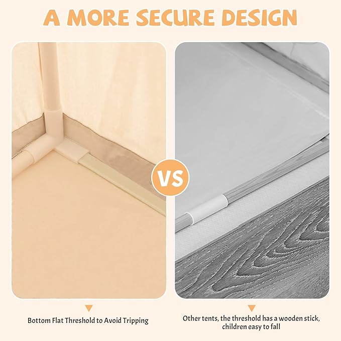 • ✨ANTI-TRIP DESIGN:Our children's tent is different from other tents in that the door is designed to be invisible threshold. Tent bottom close to the ground, children in and out of the tent will not trip or fall, very safe and reliable. Generally, the threshold of the tent door is a stick or a round pipe. When the children get in and out, they are likely to get wrestling.