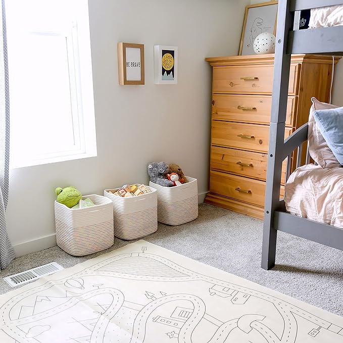 • Safe, Natural Cotton Storage Basket: Crafted from the highest quality material in the market, our toy bins are oh-so-sturdy and ready to take on little humans with a knack for nom-ing. They’re 100% safe, so you can rest easy if teething toddlers take a nibble.