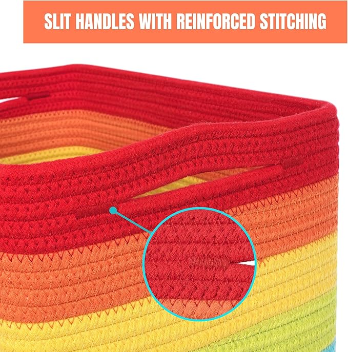 MINTWOOD Design 3-Pack Storage Baskets for Shelves, Playroom and Classroom, Book Basket, Decorative Storage Cube Bins, Woven Closet Organizers, Pantry and Shoe Organizer, Rainbow