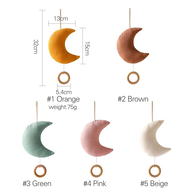 • ๐ŸŒ™ DEVELOPMENTAL CAUSE AND EFFECT - No battery required. The soft moon pull musical features an enclosed mini mechanical music box that plays Brahms' Lullaby when the cord is pulled down. The cord will contract while the music is playing. Music plays approx. 1.8 mins. per tug.