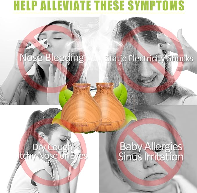 • Good Choice As Gift: This difusor is made from high-quality materials and features a sleek design ,a faux wood look that will complement any decor. It using advanced ultrasonic diffusion technology to atomize essential oils to help you breathe better. Especially during dry air, allergy season, and when you are sick, it helps you relax and sleep better, relieves allergies, and reduces the discomfort of dry skin. It's worth getting one for your family and friends.