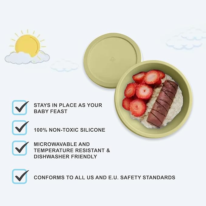 • MESS-FREE BABY BOWL: Make mealtimes a fun learning experience for your toddler without the mess with our suction cup bowls for babies. Keep your baby's food where they're supposed to be without worrying about spilling. Our baby bowls are a great way to help your little one learn self-feeding skills. Our baby silicone bowl also features a lid to keep food fresh and free from contamination!