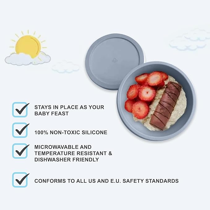 • MESS-FREE BABY BOWL: Make mealtimes a fun learning experience for your toddler without the mess with our suction cup bowls for babies. Keep your baby's food where they're supposed to be without worrying about spilling. Our baby bowls are a great way to help your little one learn self-feeding skills. Our baby silicone bowl also features a lid to keep food fresh and free from contamination!