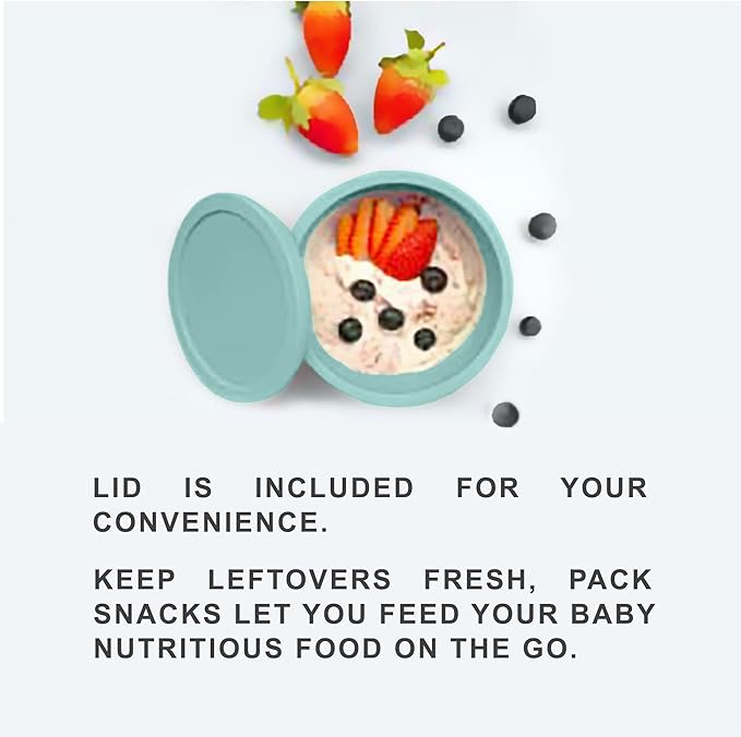• MESS-FREE BABY BOWL: Make mealtimes a fun learning experience for your toddler without the mess with our suction cup bowls for babies. Keep your baby's food where they're supposed to be without worrying about spilling. Our baby bowls are a great way to help your little one learn self-feeding skills. Our baby silicone bowl also features a lid to keep food fresh and free from contamination!