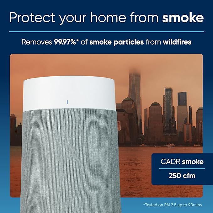 • LET’S CLEAR THE AIR SMARTER: Blueair smart air purifier app scheduling, air quality monitoring, Clean Air ETA, Welcome Home geofencing and RealTrack accurate 6–9 month filter tracking technology are customizable features; Alexa voice control available