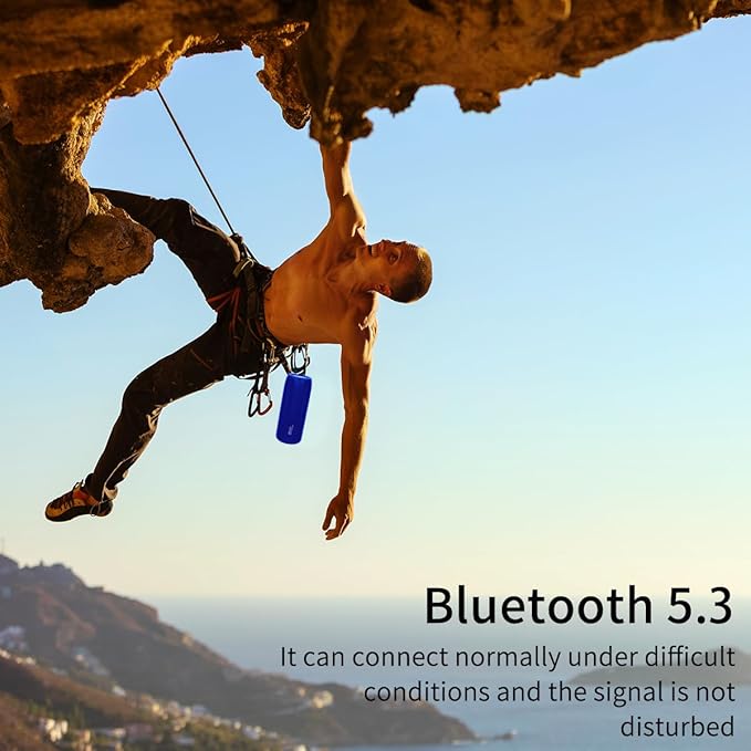 • ♩♪♫【Strong Bluetooth 5.3 signal】The bluetooth speakers portable wireless can connect normally under any difficult conditions and the signal is not disturbed. Antenna design with Bluetooth 5.3 provides greater wireless range 100ft and efficient connection to any Bluetooth devices. The Bluetooth 5.3 chip easily reads music play list. This wireless speaker not only can connect laptop, phone, MP3, iPhone,iPad, but also personal computer, TV or other non-Bluetooth device with 3.5mm audio jacks. The bluetooth speakers can be as gifts for men, women, friends or kids